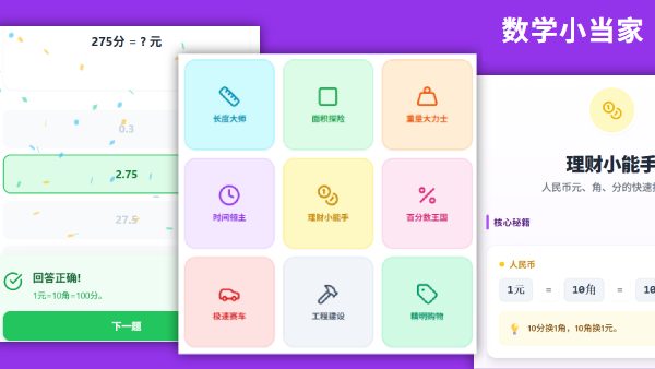 · 帮助快速掌握小学加法/乘法等各种运算定律。